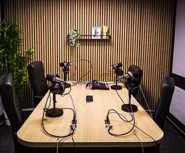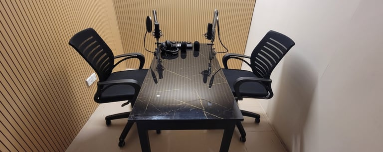 Record high-quality audio in a sound-proof environment tailored for creators. Equipped with professional-grade microphones, mixers, and acoustic panels, our podcast room is ideal for solo recordings, interviews, or small group discussions.