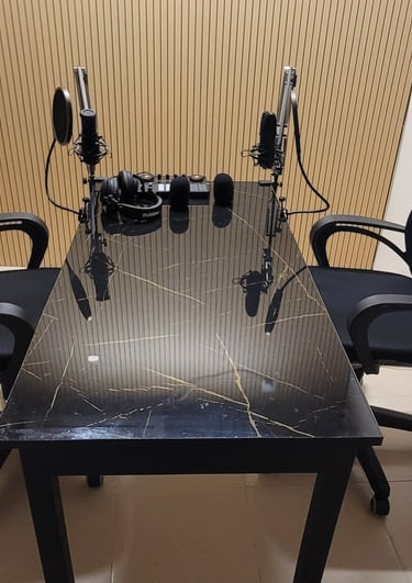 Whether you're a podcaster, content creator, or brand storyteller — our fully equipped media room offers the perfect space to record, edit, and publish your ideas with clarity and confidence.