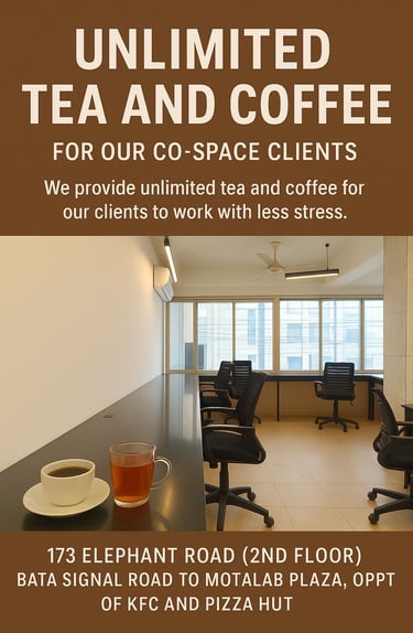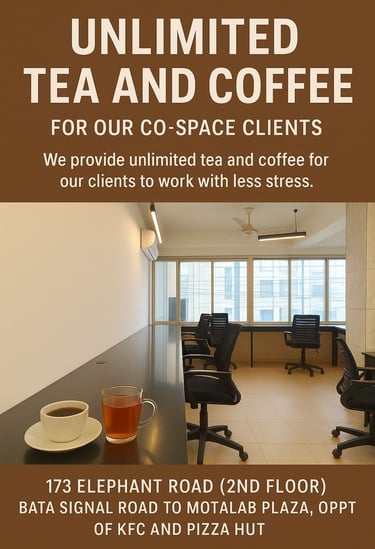 Whether you're a solo entrepreneur, a remote team, or a small creative group — our office space is crafted for comfort and productivity. With a warm, cozy setup and essential amenities, it’s the perfect spot to get work done or host your next team session.